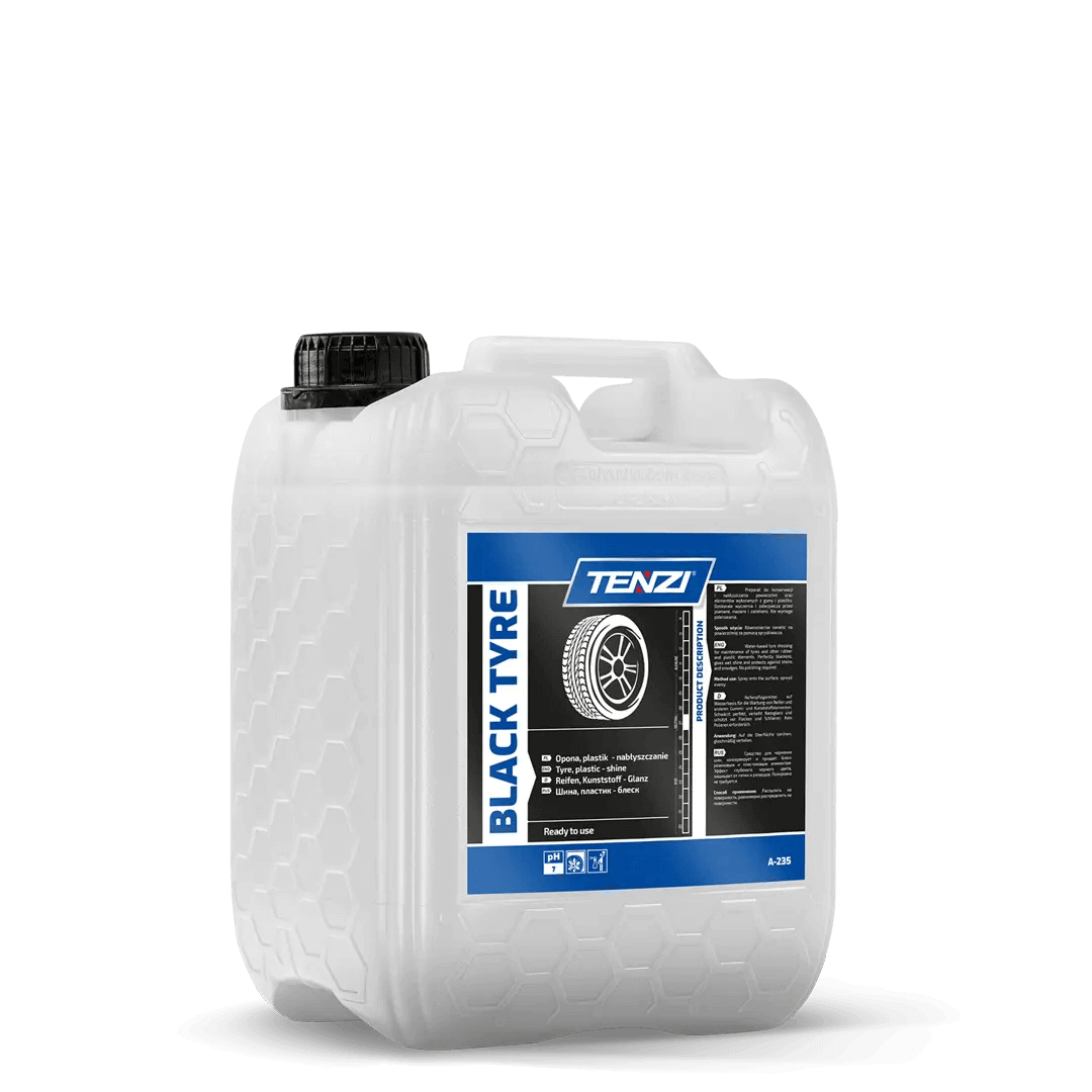 Black Tyre (5 לי') מוצר איכותי המשמש להברקת אלמנטים מפלסטיק ואת צמיגי רכב. מוצר מוכן לשימוש, המעניק לחות ומילוי מיקרו-נקבוביות לתוך המשטחים השונים, וכך מצליח לחזק את מבנה החומר ולספק אפקט ברק מתמשך. בעת השימוש המתמשך הצמיגים וחלקי הפלסטיק של הרכב צוברים שכבות ברק וצבע והופכים עמידים יותר לגורמים חיצוניים כמו קרני UV, אבק או מים. Black Tyre הוא מוצר קל לשימוש.